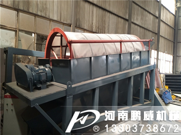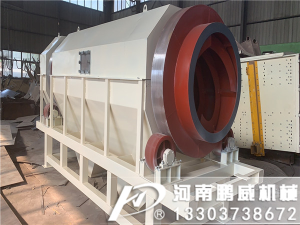 滾筒篩是通過變速箱式減速系統(tǒng)對設(shè)備中心分離筒實行合理旋轉(zhuǎn),中心分離筒是由若干個圓環(huán)狀扁鋼圈組成的篩網(wǎng),中心分離筒安裝是與地平面呈傾斜狀態(tài),工作中物料從中心分離筒上端進入筒網(wǎng),在分離筒旋轉(zhuǎn)過程中,細物料自上而下通過圓環(huán)狀扁鋼組成的篩網(wǎng)間隔中得到分離,粗物料從分離筒下端排出進入粉碎機。設(shè)備中設(shè)有板式自動清篩機構(gòu),在分離過程中,通過清篩機構(gòu)與篩體的相對運動,由清篩機構(gòu)對篩體進行連續(xù)“梳理”,使篩體在整個工作過程中始終保持清潔,不會因篩孔堵塞而影響篩分效率。軸器連接在一起,驅(qū)動滾簡裝置繞其軸線轉(zhuǎn)動。設(shè)備工作后,物料進入滾筒裝置后,由于滾筒裝置的傾斜與轉(zhuǎn)動,使篩面上的物料翻轉(zhuǎn)與滾動,使合格物料(篩下產(chǎn)品)經(jīng)滾筒外圓的篩網(wǎng)排出,不合格的物料(篩上產(chǎn)品)經(jīng)滾筒未端排出。在滾動過程中篩子上部的拍打架會直拍打滾筒裝置,防止物料卡在篩網(wǎng)中影響篩子使用。原料送入圓筒中之后,會被旋轉(zhuǎn)的圓筒帶起并落下,這種行為將一直反復(fù)地沿著圓筒運行著,細的顆粒通過篩孔并從導(dǎo)料槽排出,而粗的顆粒則一直向前運動直到從圓筒篩的尾部排出。同時滾筒篩的噴淋在滾筒裝置轉(zhuǎn)動過程中對篩子表面及物料進行沖洗,使物料更干凈。